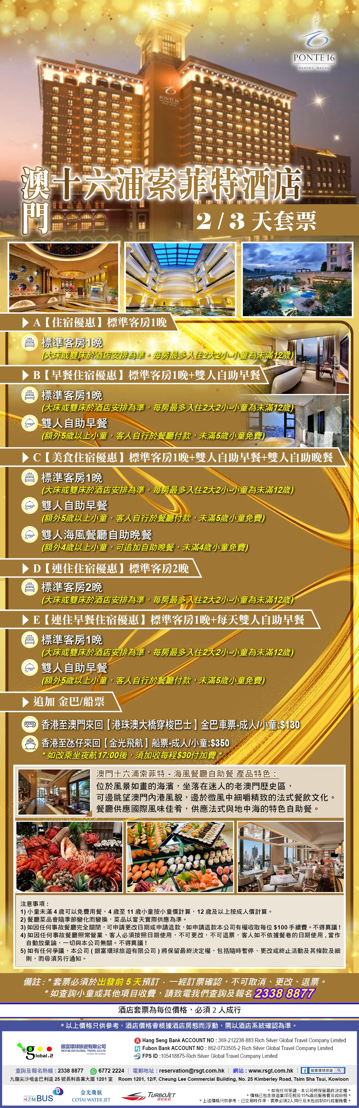 澳門十六浦索菲特酒店2/3天套票 簡介