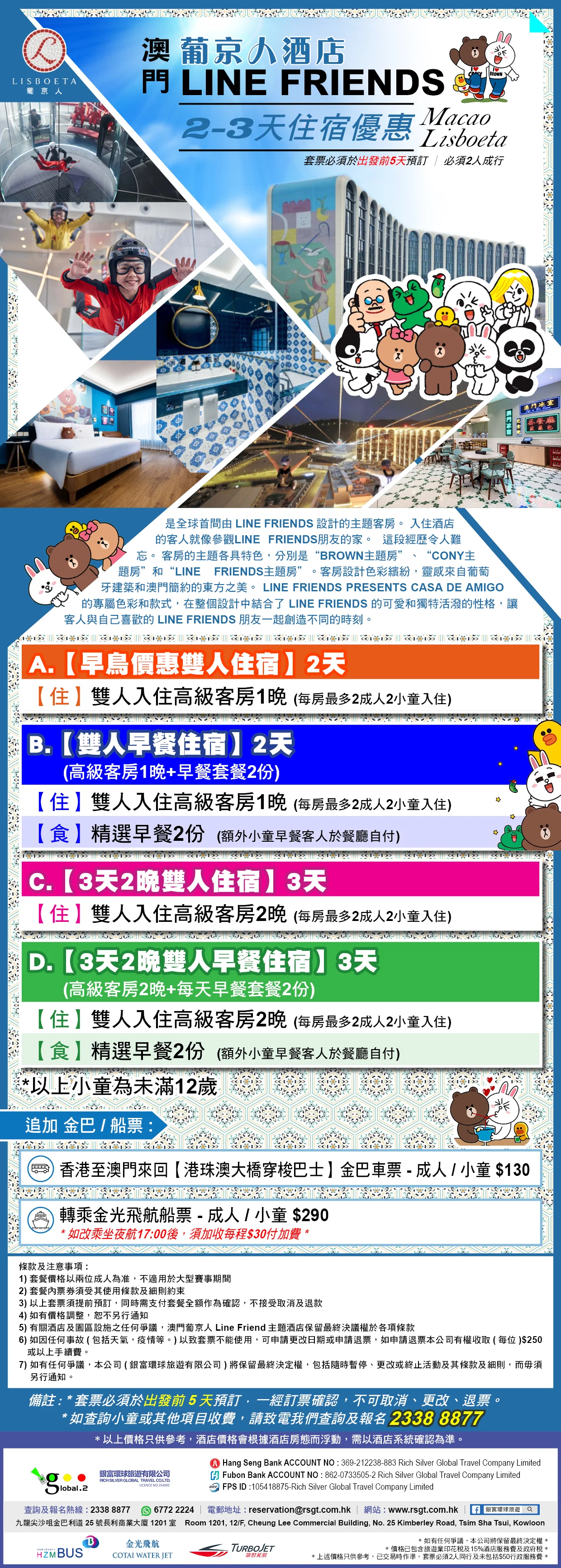 澳門葡京人Line Friend主題住宿2/3天套票 簡介