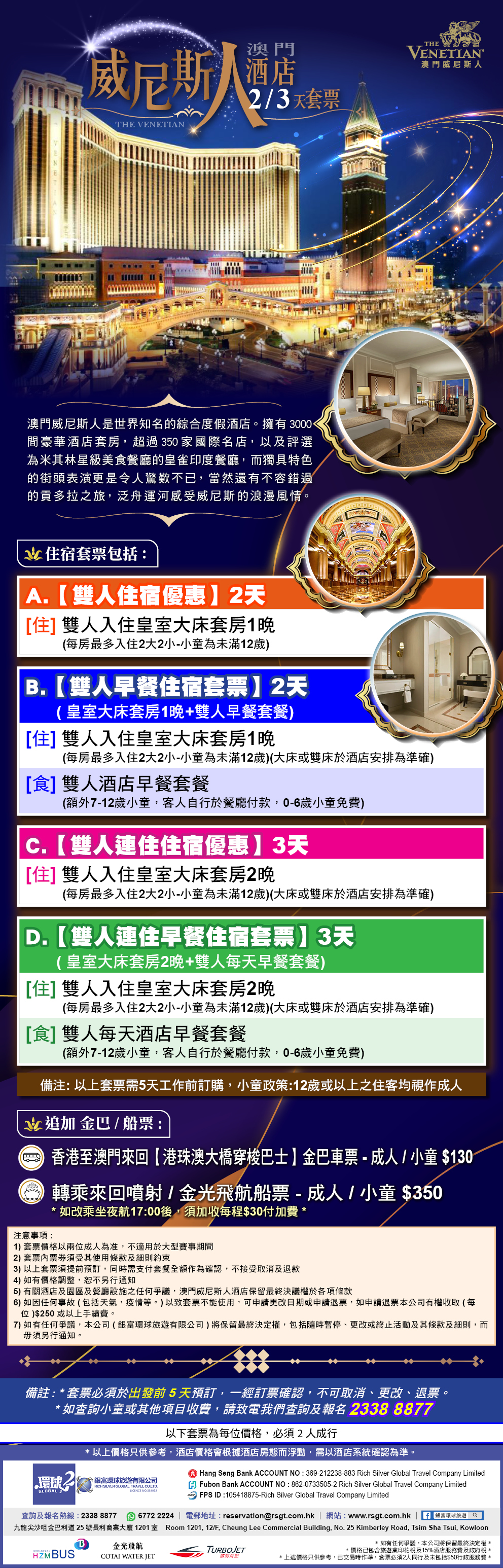 澳門威尼斯人是世界知名的綜合度假酒店。擁有超過350家國際名店,以及星級美食餐廳,而獨具特色的街頭表演更是令人驚歎不已,當然還有不容錯過的貢多拉之旅,泛舟運河感受威尼斯的浪漫風情。