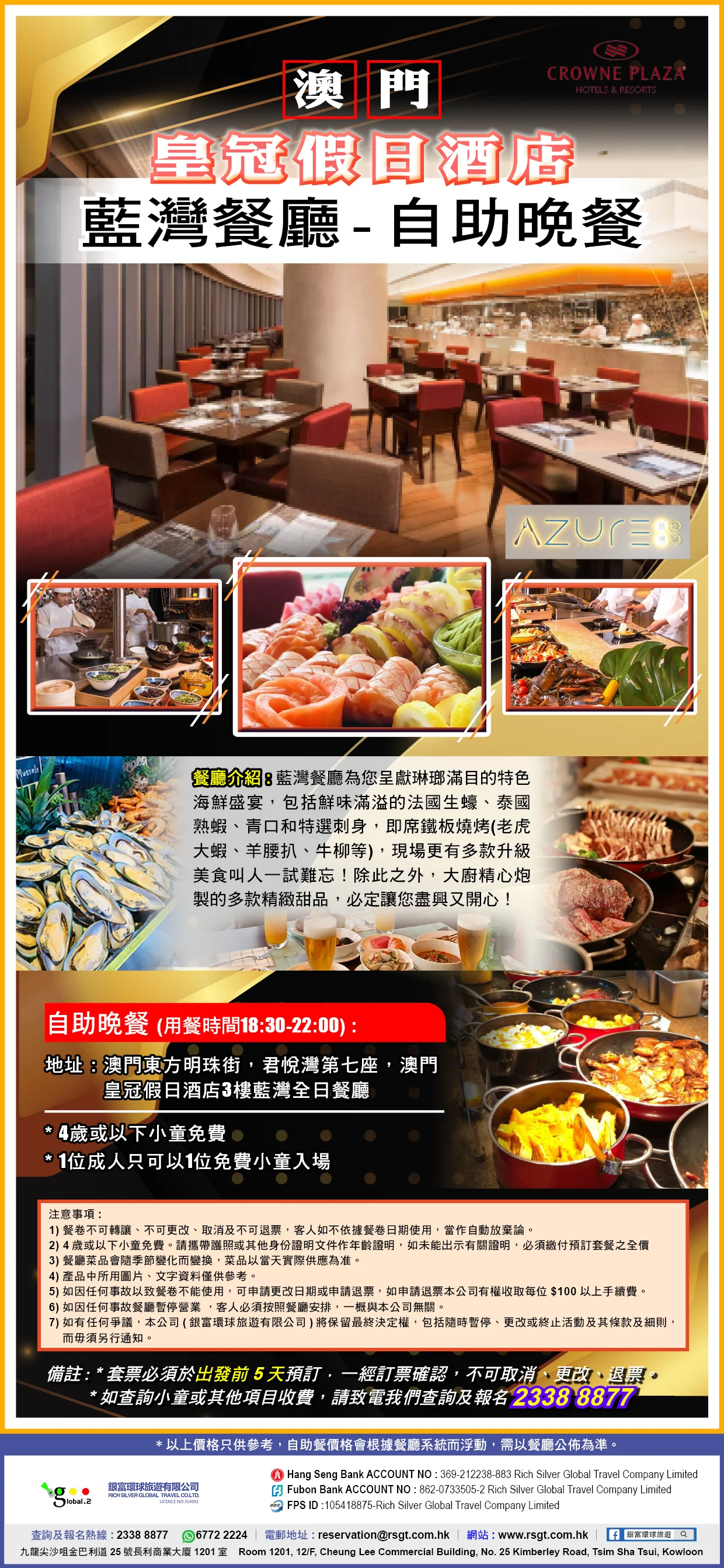 澳門皇冠假日酒店藍灣餐廳自助晚餐 簡介