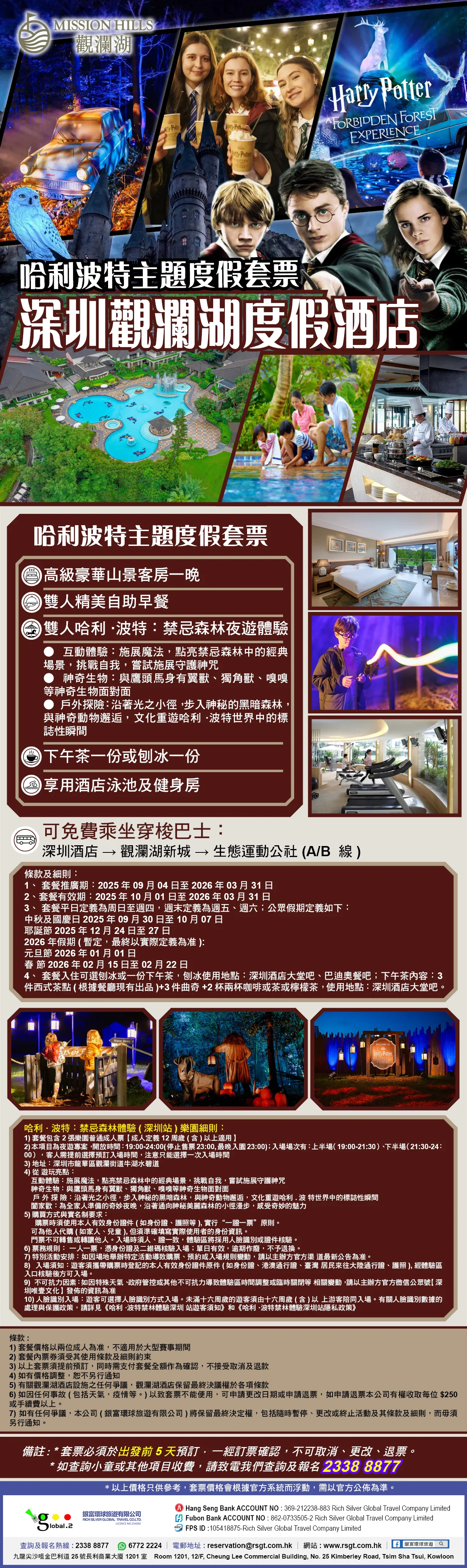 $695起 (每位)~魔法之旅限時啟程!深圳觀瀾湖+哈利波特禁忌森林體驗2天套票優惠