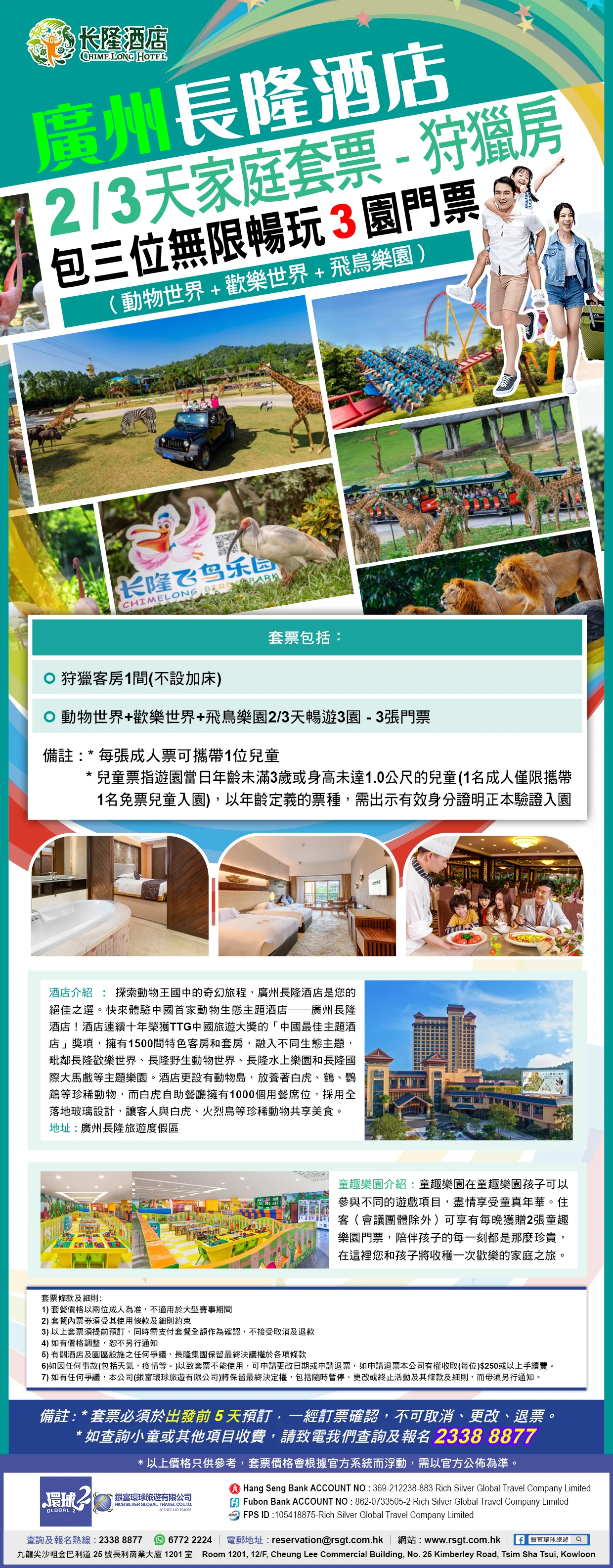廣州長隆酒店【2/3天家庭套票】狩獵房(包3位無限暢玩3園-動物世界+歡樂世界+飛鳥樂園)+限時贈送2張水上樂園門票 簡介