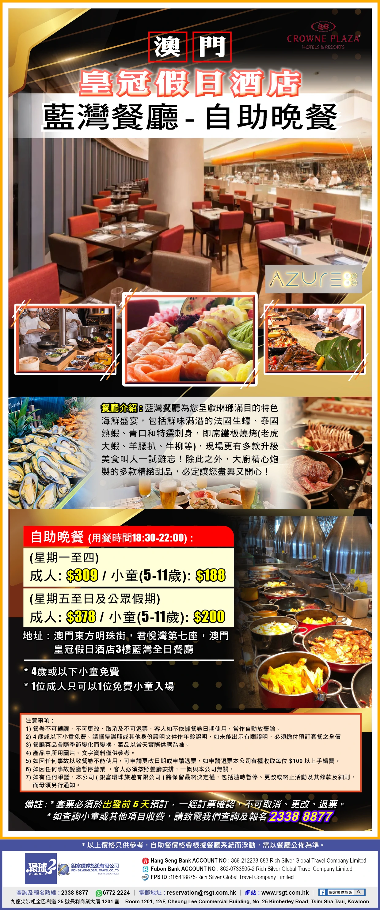 澳門皇冠假日酒店藍灣餐廳自助晚餐 簡介